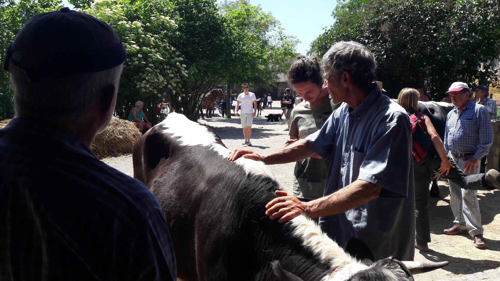 Ainsi, avant même d’arriver à destination, d’anciens et de nouveaux participants se rencontrent, renouant une fois de plus avec ce faisceau de contacts qui composent le réseau des bouviers : agriculteurs et éleveurs locaux spécialisés dans les Vosgiennes et éleveurs d’autres régions qui protègent et affinent leurs souches génétiques à double usage (viande et lait), comme pour la Ferrandaise. Philippe semble être le seul éleveur de France à avoir conservé son cheptel destiné à la triple utilisation (viande-lait-énergie).