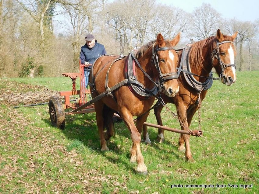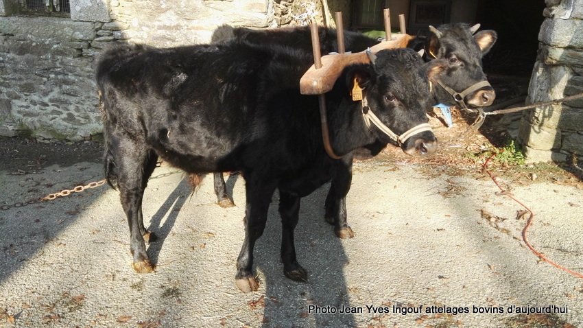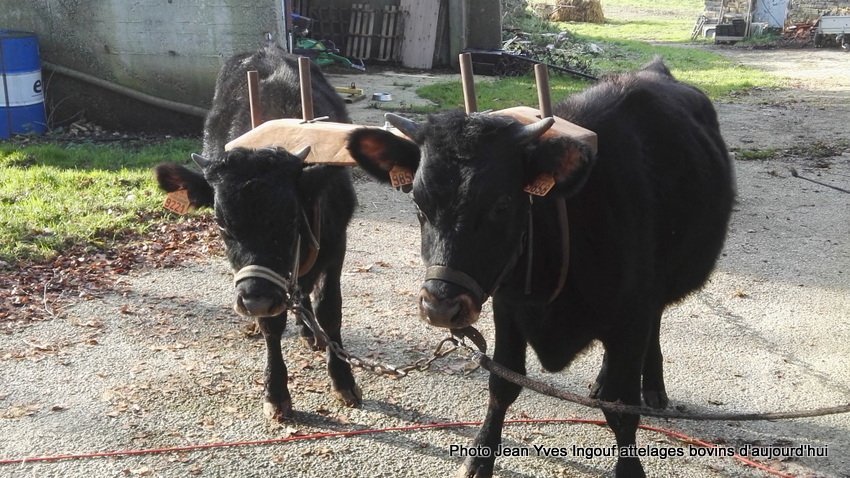Jean-Yves Ingouf de Plouguenast dresse actuellement deux mâles Canadiens. Il les joins au joug de garrot et ce sont de bons élèves.