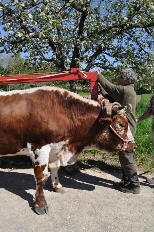 Le manque de temps et de main-d’oeuvre (ses parents sont maintenant âgés, et il y a moins d’entraide car moins d’exploitations sur la commune), limitent un peu Joël dans une utilisation encore plus fréquente des vaches, mais à la fois les contraintes techniques et sa passion pour les bovins et pour l’attelage, dans la continuité de ses parents, font que les animaux sont très souvent au travail sur l’exploitation.