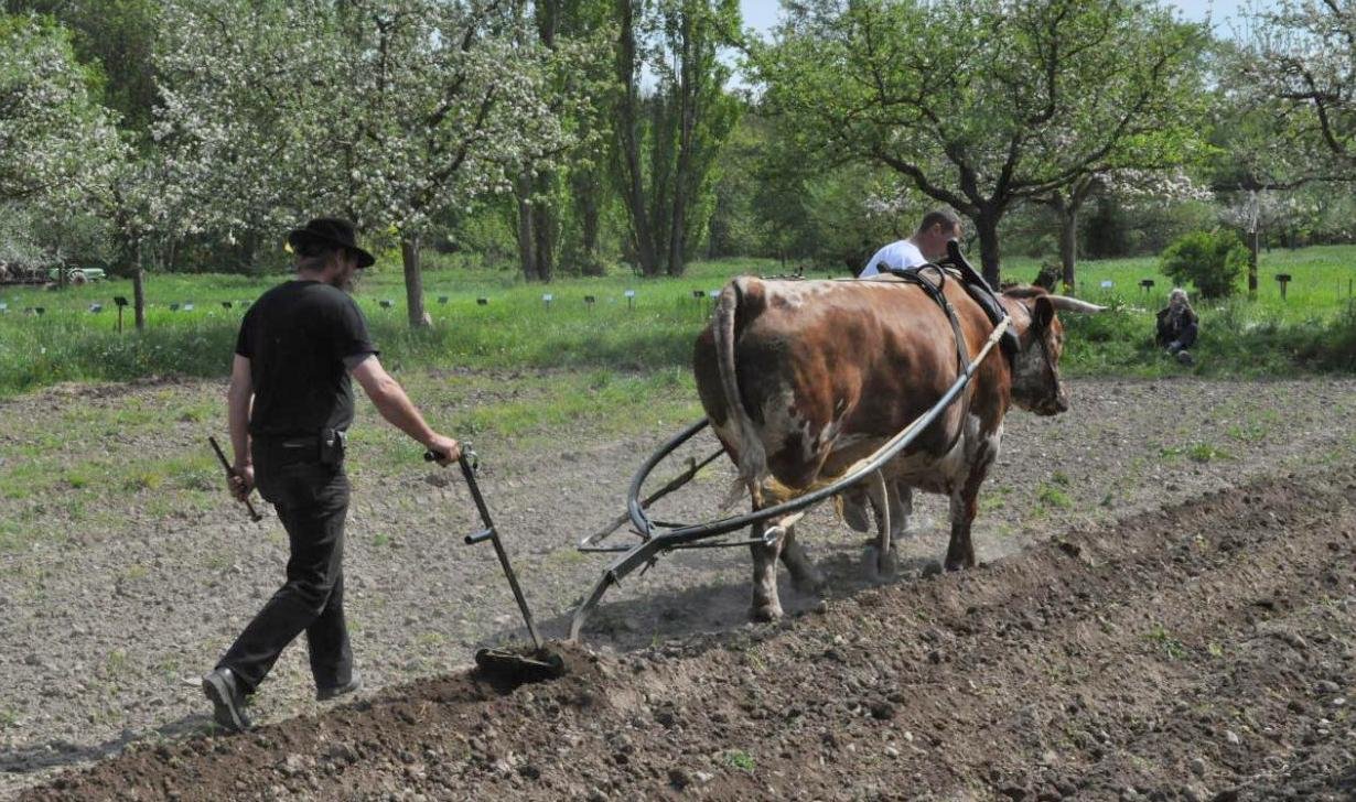 Des séances de labour et de buttages ont été réalisées avec un des boeufs de l’écomusée attelé à cet outil au collier et mené par différents bouviers. Elles se sont avérées fort concluantes devant la simplicité, l’efficacité et la maniabilité de l’engin dues à sa faible longueur.