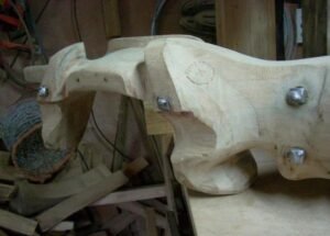 Réaliser un joug dans une pièce sèche déjà fissurée ou fendue (même peu), ce serait prendre le risque d’avoir un morceau de bois devant être conservé qui se détache avant la fin de la fabrication, surtout dans le cas de modèles de jougs couvrants et donc moins droits.