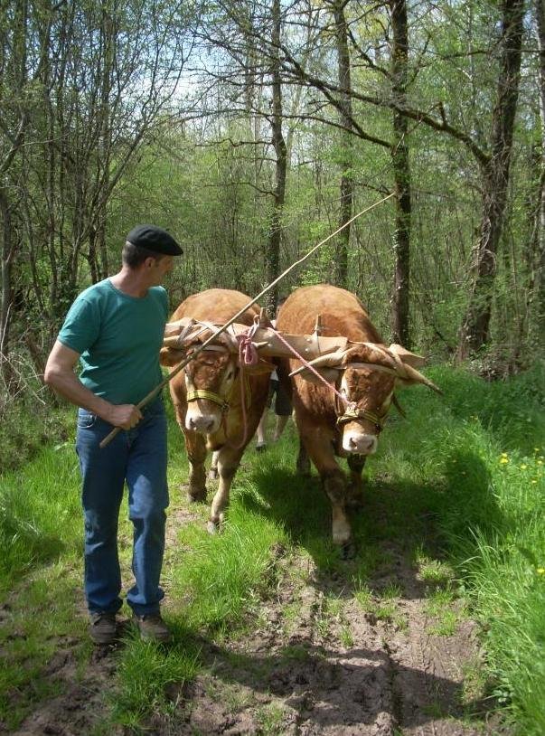 Sans compter que la réalisation d’un joug n’est pas seulement une histoire de copeaux ! Je ne dis pas cela en rapport avec ton article, Michel, mais seulement parce que ces lignes me donnent l’occasion de le préciser. Je sais bien qu’il en est de même pour les autres métiers traditionnels du bois, mais dans ce cas-là, le résultat s’adapte au vivant! Il faut aussi avoir les connaissances et la pratique de l’utilisation. Visualiser « comment les bêtes tirent, travaillent ». Si c’était d’une relative évidence pour la génération de René ayant baigné durant l’enfance, dans la fin de la longue époque, ère même, où « la corne arrachait tout », ça l’est bien moins pour ma génération, par exemple. Parfois au début, René me disait :