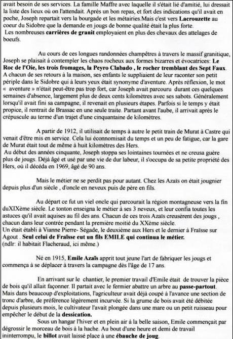 Document extrait du livre d’Alain Robert , Centre de Recherche de Rieumontagné, communiqué par Nadia Pardigon. Elle habite et travaille dans la ferme d’un ancien jougtier à Fraïsse-sur-Agout, qui  fabriquait à peu près 300 jougs par an.