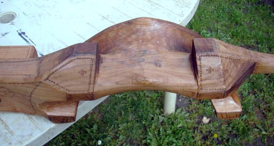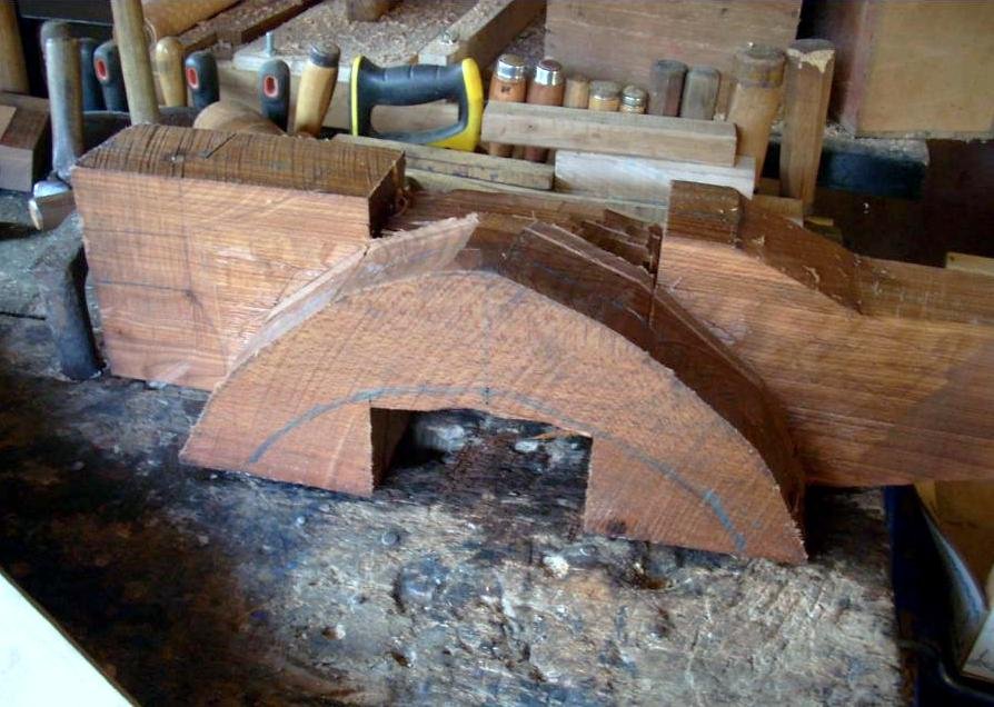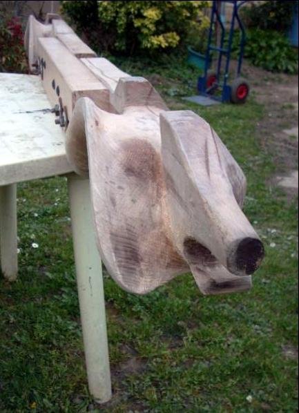 Il fallait cependant trouver la pièce de bois à tailler. Une amie, Martine Hunimels, avait son grand-père qui avait fait débiter un hêtre dans les années 40 en vue d’en faire des jougs. Ces pièces de bois était toujours dans « l’aizu » depuis plus de trente ans dans un pré de la ferme de Savault (Ouroux-en-Morvan 58).