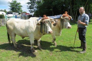 Le joug en service après quelques réglages aux passages de cornes à la fête de l’âne à Baron le 8 Juillet 2012 avec Froment et Azalée