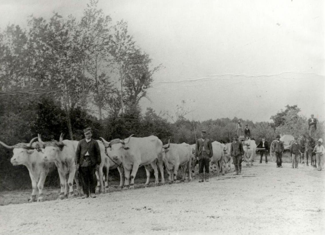 Les deux bœufs étaient alors amenés et placés côte à côte, comme ils devaient être bons à l’attelage. Le jougatier après avoir dégrossi le bois à la hache procédait à des essayages. Travail délicat : le joug ne doit pas blesser la bête ; il doit s’adapter à la forme des cornes, particulières à chaque bœuf.