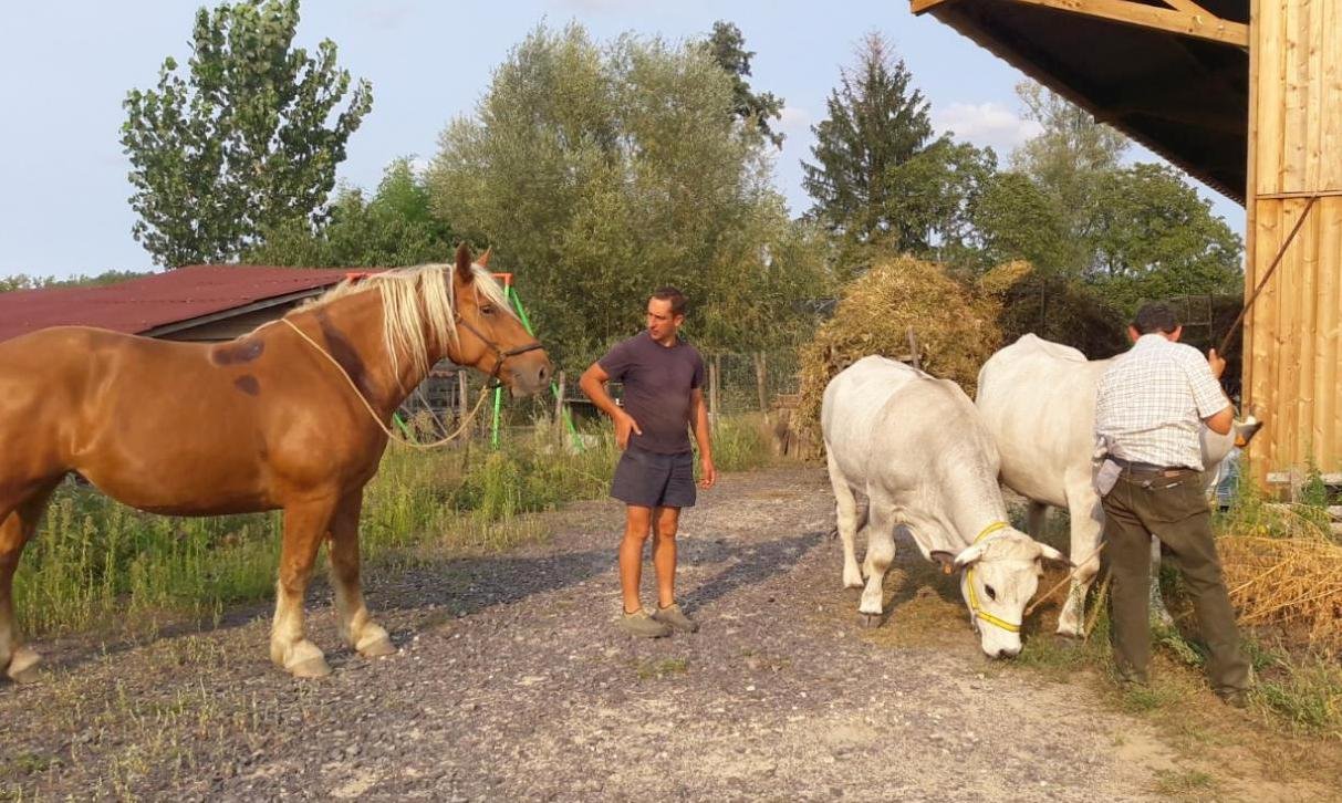 Revenons un peu en arrière dans notre chronologie pour évoquer un grand acteur de la traction bovine – l’Écomusée d’Alsace. En pleine crise d’existence de l’Écomusée en 2006-2007, François Kiesler, chargé du programme de l’agriculture, et le bouvier Philippe Kuhlmann ont malgré tout accueilli la rencontre des Ethnozootechnie Bouviers d’Alsace (Simon, 2007), à laquelle ont participé des spécialistes de la traction chevaline comme Jean-Louis Cannelle du Centre Européen de Ressources et de Recherches en Traction animale (CERRTA) ou Pit Schlechter de la Fédération Européenne du Cheval de Trait pour la promotion de son Utilisation (FECTU). Ces rencontres se sont poursuivies chaque année depuis et ont vite attiré l’attention de participants étrangers – luxembourgeois, belges, britanniques, suisses, et surtout, bon voisinage oblige, de nombreux allemands. Depuis le début, Philippe Kuhlmann a littéralement fait le pont entre Français et Allemands à travers des réunions dans les deux pays, aujourd’hui renforcées par l’accueil de stages de formation de bouviers deux fois par an au sein de l’Ecomusée d’Alsace. Certes, ce n’est pas le seul exemple de formations – le CFPPA de Montmorillon (Coti, 2014), tout comme des privés comme Olivier Courthiade ou Emmanuel Fleurentdidier, en ont proposées – mais c’est sans doute celle avec l’histoire la plus riche et le rayonnement le plus durable.
