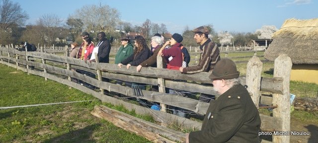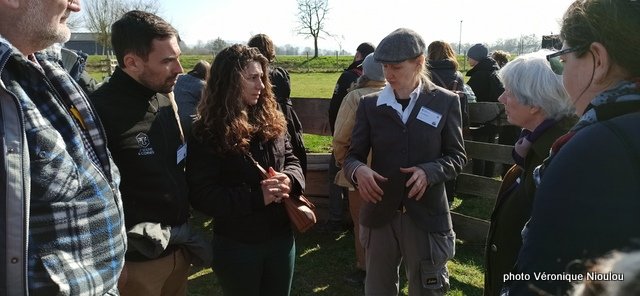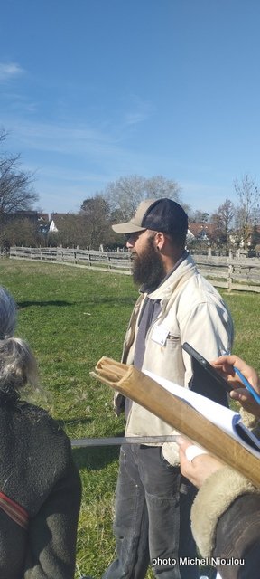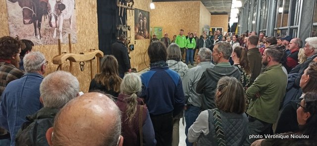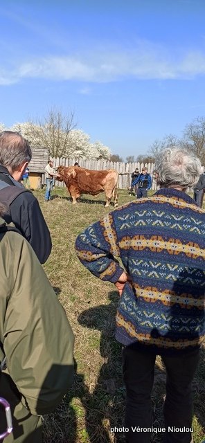 En plusieurs sessions sur la carrière de la ferme, différents intervenants ont décrit et présenté leurs méthodes d’approches et de mise au travail. Laurent Martin de « 2 mains 4 cornes » des Herbiers (85), Philippe Kuhlmann éleveur dresseur de Chatelux-Malvaleix (23), Pascal et Jo Durand paysans de Gentioux-Pigeroles (23) sont intervenus séparément ou conjointement sur les différents ateliers. Une intervention des ostéopathes Laurie Cheramy et David Menu de Bessay sur Braye (72) et de la vétérinaire Clohé Boisseau du Theil sur Huisne (61) ont permis d’aborder l’impact du travail sur l’animal et les bonnes méthodologies à appliquer en conséquence .