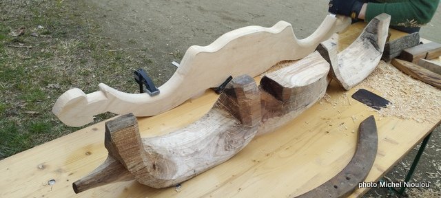 Dimanche, animaux et meneurs se sont déplacés au bourg de Courgenard pour présenter le travail avec les bovins sur une terre à proximité de la brocante organisée dans le village. Michel et Véro Nioulou ont présenté des démonstrations (vire- mouche et taille de jougs) Laurent Martin présentait des documents sur son entreprise autour des bovins de travail.
