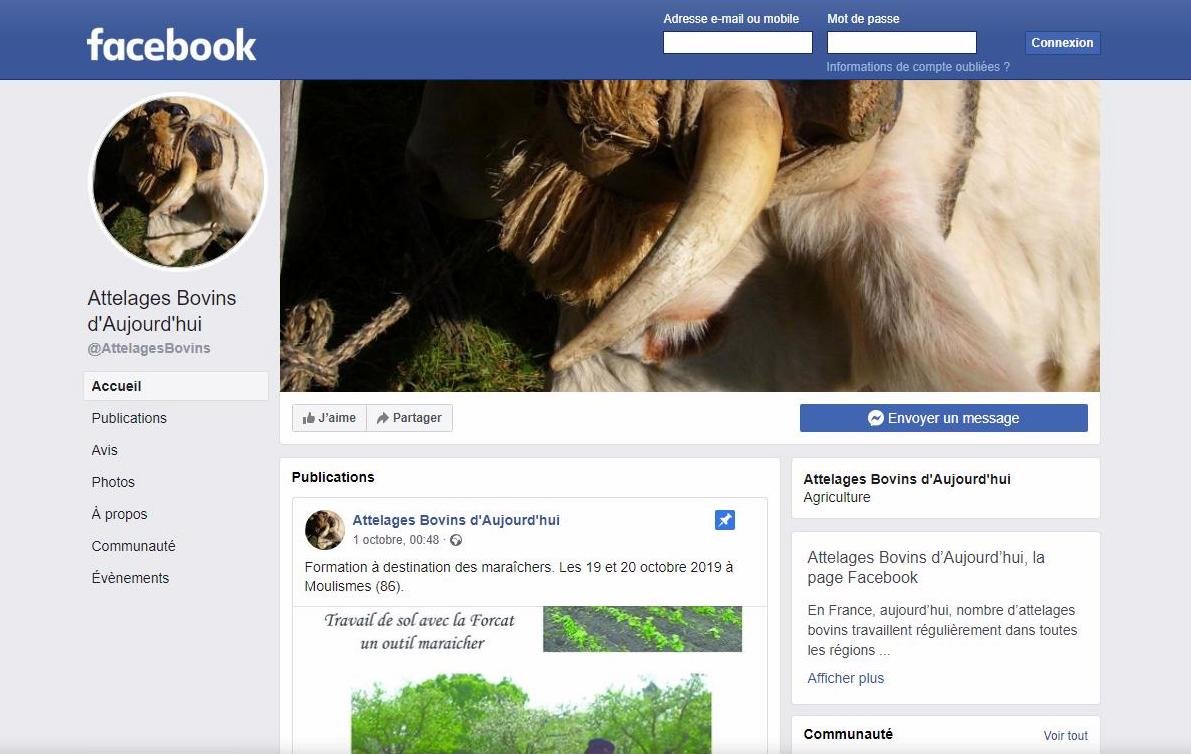 Elle pourrait porter le nom du blog « Attelages Bovins d’Aujourd’hui » que votre serviteur tient depuis 2013 et pour lequel Mélusine Bailloux-Arbeit a proposé d’ouvrir une page Facebook afin de lui donner une autre dimension de diffusion.