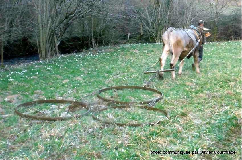 Le groupe de jeunes bouviers vendéens prouve qu’ils aiment chanter, mais ils prennent également le micro pour rendre compte de leur stage chez Michel Nioulou, pilote du blog « Attelages Bovins Aujourd’hui » et jougtier expérimenté. Très naturellement, le ludique se marie avec le pédagogique. Il y a des activités comme la démonstration de fauchage et d’andainage traditionnels sur la pente – une association de travaux intimement liés avec la traction bovine. Christine Arbeit, pilote du groupe Facebook des bouviers, informe régulièrement tout le réseau français des faucheurs sur les événements associés à l’attelage de bœufs, pour encourager tout le réseau de métiers essentiel à l’utilisation de la traction animale.