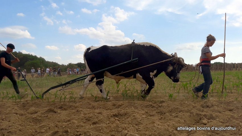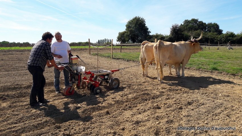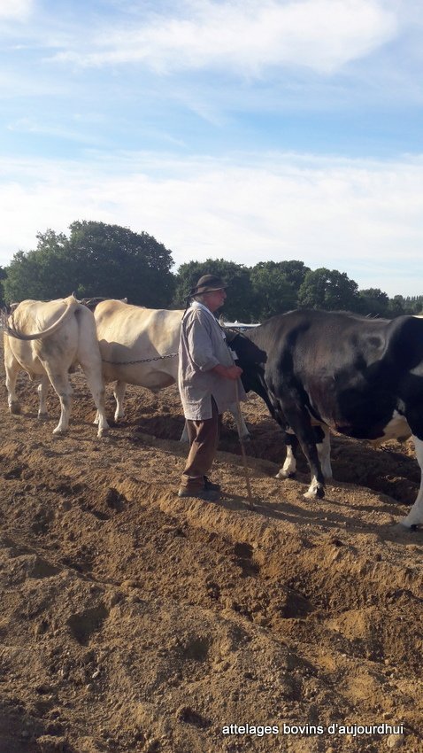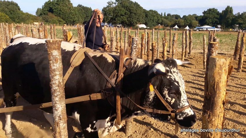 Elle a été mise en oeuvre au labour avec un brabant. De la tête de l’attelage à la charrue se succédaient, la paire de boeuf Vosgiens d’Emmanuel Fleurentdidier, la paire de vaches Béarnaises de Pierre Nabos, la paire de vaches Nantaises de Jean-Marc Chauveau, la paire de boeufs Nantais de Jean-Bernard Huon et sa paire de Pie-Noire Bretons.