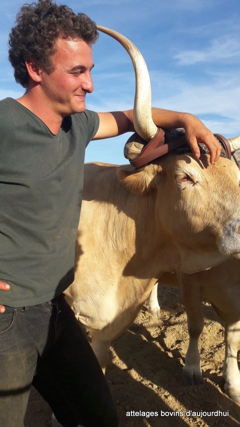 Nous avons aussi eu la chance de croiser Laurent Avon en visite sur la fête. C’est la personne incontournable du milieu de l’attelage bovin et des races locales à faible effectifs en France. C’est grâce à son travail que nous avons pu développer le blog en contactant les bouviers qu’il avait répertoriés.