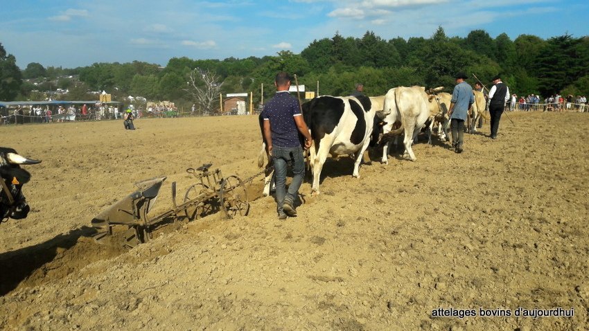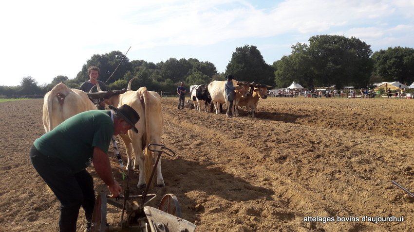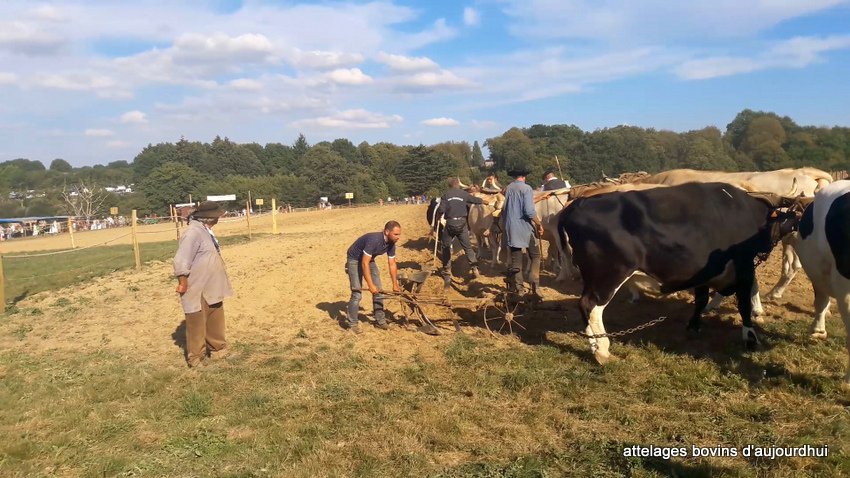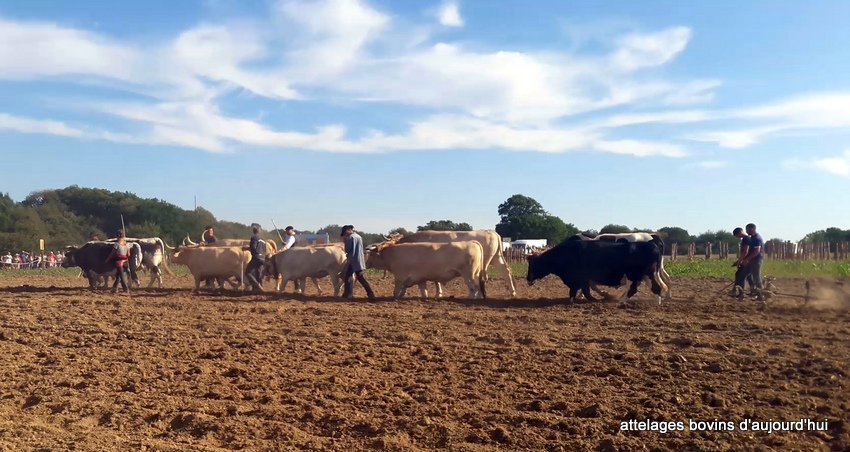 Pas moins de 13 boeufs, génisses et vaches étaient au travail avec leurs bouviers.
