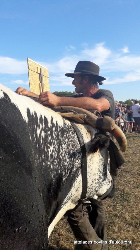 Jean-Marc Chauveau et ses deux jeunes vaches Nantaises qui ont encore besoin de travail et d’expérience vu leur jeune âge, a parfaitement bien assuré ses démonstrations et la rencontre avec les autres bouviers a été aussi pour lui un grand moteur de motivation pour la suite de son travail.