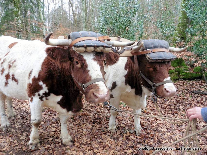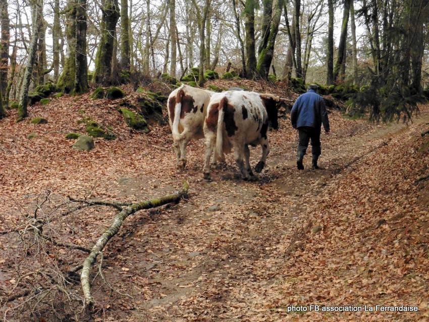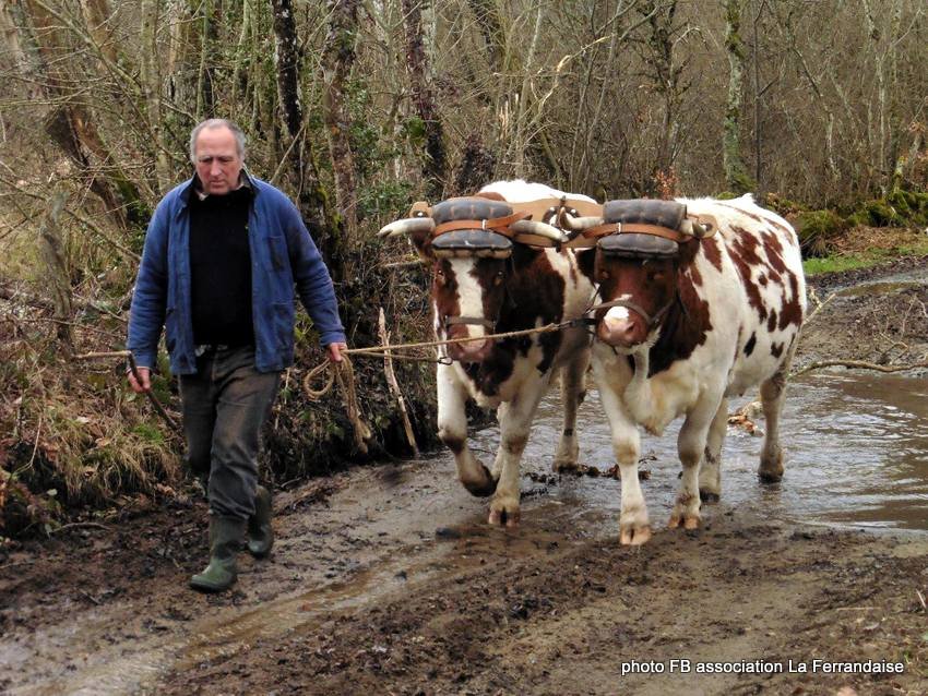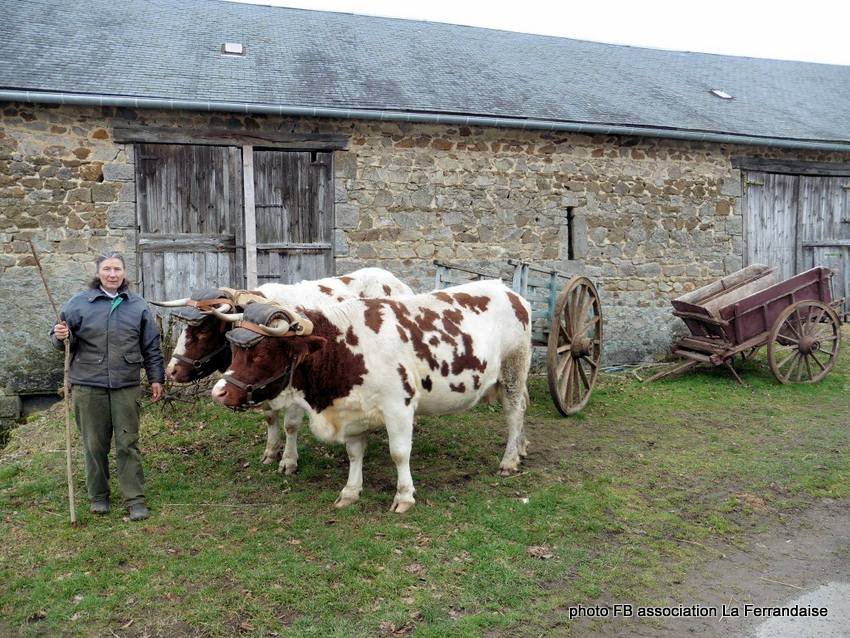 Maxime et Lucie Divo travaillent sur une petite ferme paysanne dans le Livradois (Puy de Dôme) (Cliquez ici pour voir). Ils ont une paire de Vaches Ferrandaises pour effectuer leurs différents travaux.