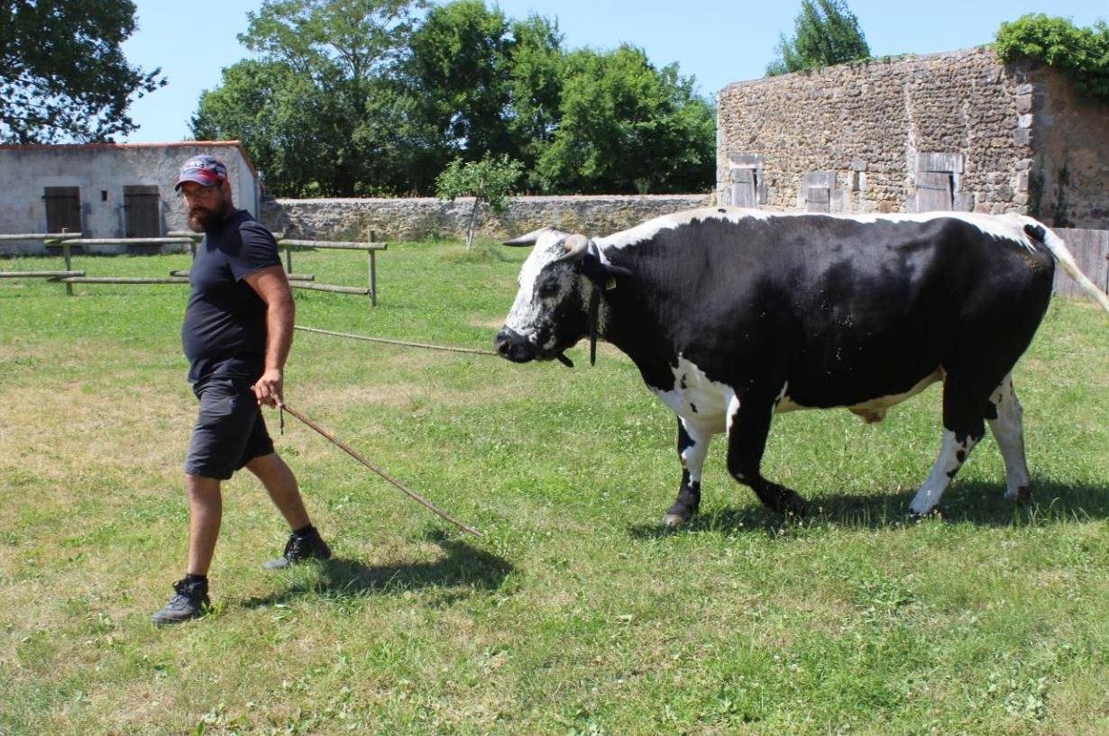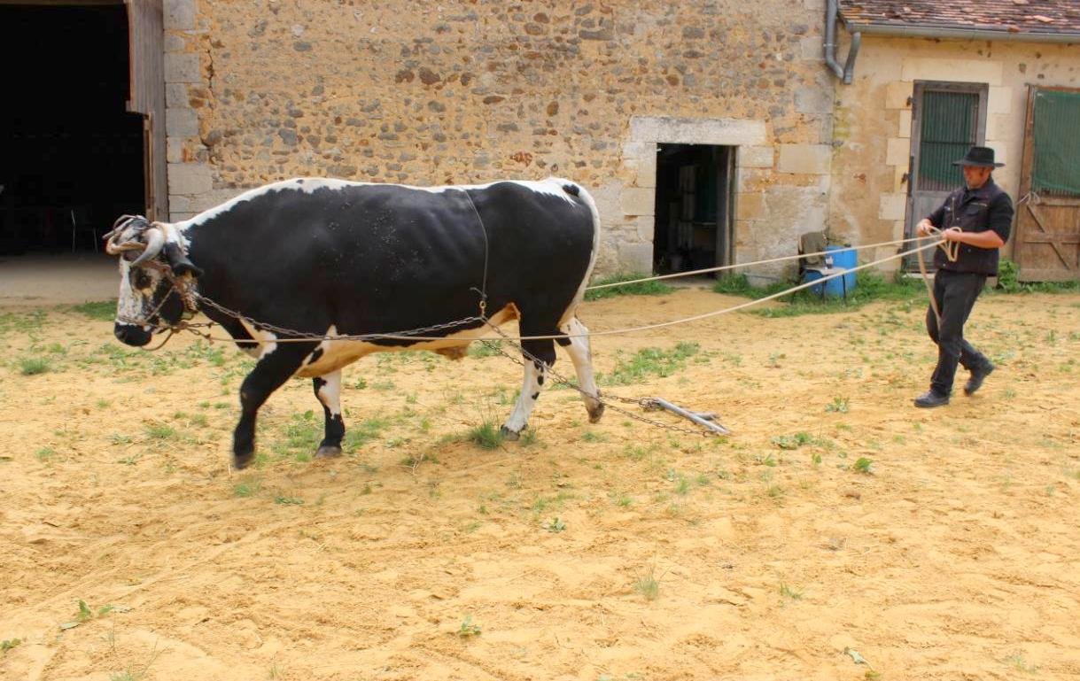 Tino est un bœuf qui apprend vite même si la manœuvre est délicate pour lui.