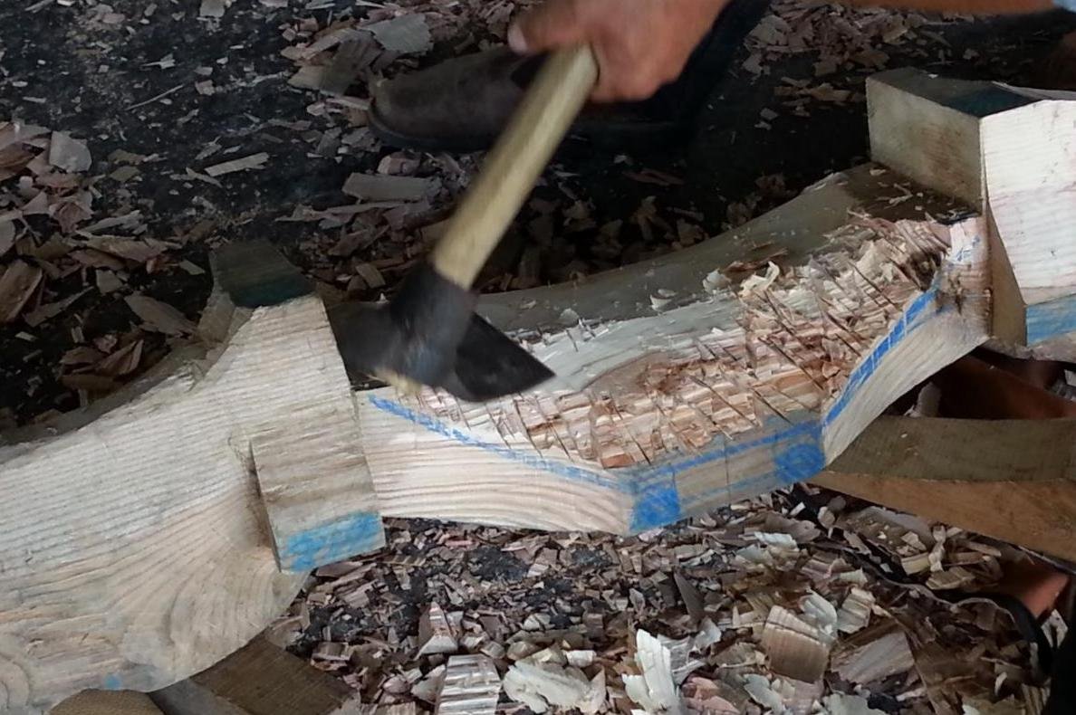 Soigneusement enveloppés dans des bâches étanches, nous déballons un peu avant neuf heure nos pièces de bois maintenues humides depuis chez nous à l’autre bout de la France, l’Aveyron pour Lionel et la Saône-et-Loire pour moi.
