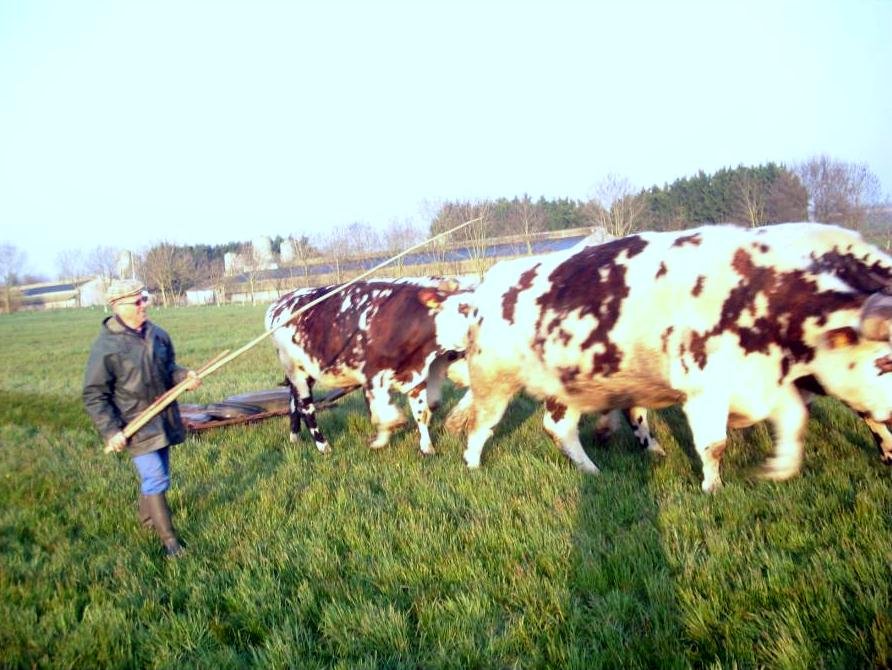 Nous n’avons pas la prétention de former des bouviers en un hiver de temps, mais plutôt de créer une approche pour certains et un approfondissement pour d’autres. Nous inculquerons une base commune pour le liage, le menage, et le dressage …, tout en expliquant que la traction bovine est riche, au point que chaque acteur participant à cet art y apporte sa touche, sa couleur et sa forme…